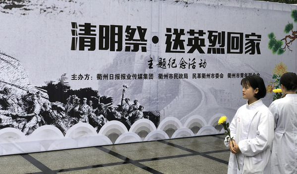 2018年3月25日,春雨绵绵的清晨仿佛在和人们说着一段让人难以忘怀的历史。这天,医学院50位入党积极分子与侵华日军细菌战衢州受害者、衢报小记者团代表以及社会各界的代表一起参加了由衢州日报报业媒体集团、衢州市民政局、民革衢州市委会、衢州市青年联合会主办的,在衢州府山烈士陵园举办的“清明祭,送英烈回家”主题纪念活动。