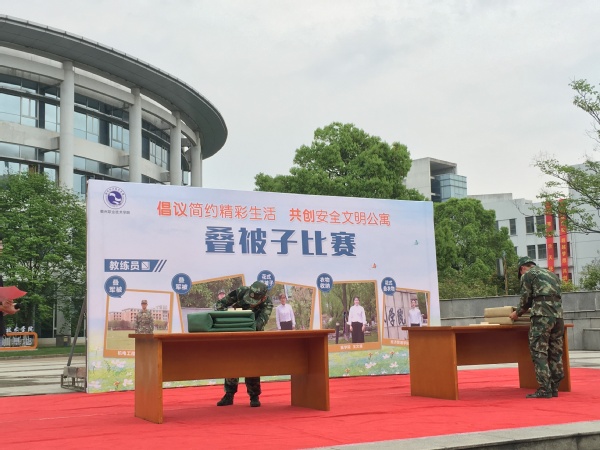 4月2日中午,学生处在下沉式广场举办叠被子比赛,学生处处长、各二级学院党总支副书记等参加了开幕式。