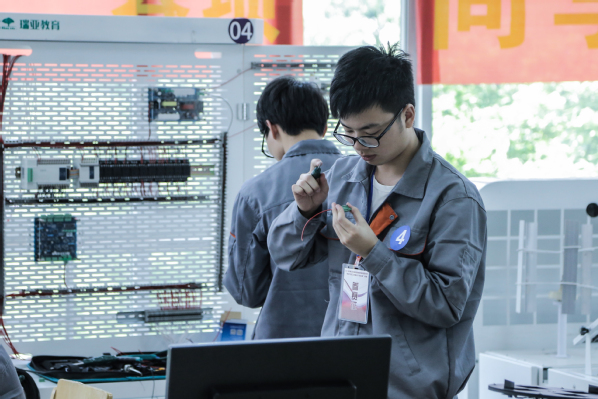 4月18日,2018年浙江省高职院校技能大赛暨全国职业院校技能大赛选拔赛“光伏电子工程的设计与实施”赛项在衢州职业技术学院举行。图为比赛中选手们在进行安装部署、系统调试检测。