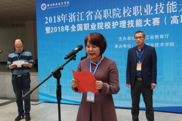 4月21日至22日,2018年浙江省高职院校职业技能大赛护理技能竞赛暨2018年全国职业院校护理技能大赛(高职组)浙江赛区选拔赛在我校隆重举行。大赛裁判长、浙江中医药大学护理学院院长何桂娟教授,浙江省护理学会杨丹主任,衢州职业技术学院党委委员、副校长何百通,医学院院长姚水洪出席开赛式。