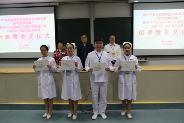 选手们稳定的发挥,赢得裁判高度赞誉。我校6位参赛队员凭借扎实的专业知识、娴熟规范的操作技能,在比赛中全部获奖。其中,由范晓江、吴忠勤老师指导的盛俊艳同学,由吴建军、范晓江老师指导的邵海鸿同学荣获一等奖,倪剑涛、方淑倩、沈燕霞获二等奖、蒋婷婷获三等奖。 2名一等奖选手将代表浙江省参加全国护理技能大赛。