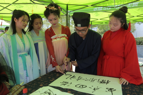 读书可以修德,识礼可以养气。在市委市政府提出创建“南孔圣地 衢州有礼”城市品牌的大背景下,作为地方高校,为传播和创新知识,为广大学子提供读书学习的场所,为营造清新高雅的校园文化,引导广大学子争做知礼明礼的时代青年,校党委提出把“有礼”和中华优秀传统文化相结合,与读书相结合,打造“花开四季 书香四溢”的衢职校园风尚。4月25日,我校“书香四溢 衢职有礼”系列活动开幕式暨诗词游园会活动在思齐广场举行。党委书记崔戴飞,党委副书记陈青,校党委委员、宣传部部长孔庆红等领导参加了本次开幕式。