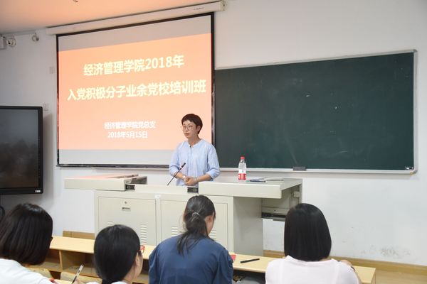 5月15日至18日,经济管理学院2018年度业余党校培训班暨入党积极分子培训班在阶西3-1成功举办。经济管理学院党总支书记斯彬彬做开班动员,并对党课纪律提出要求,全院共81名入党积极分子参加培训。