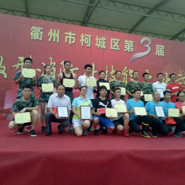 技能大比武分为消防理论考核和3个消防实操项目比赛(40米两盘水带连接操、携消防器材集体项目登五楼操、50米油盆灭火)。比赛中,参赛队员齐心协力、共同努力,最终获综合排名第5名的优异成绩,其中40米两盘水带连接操排名第二、集体项目登五楼操排名第三名。
