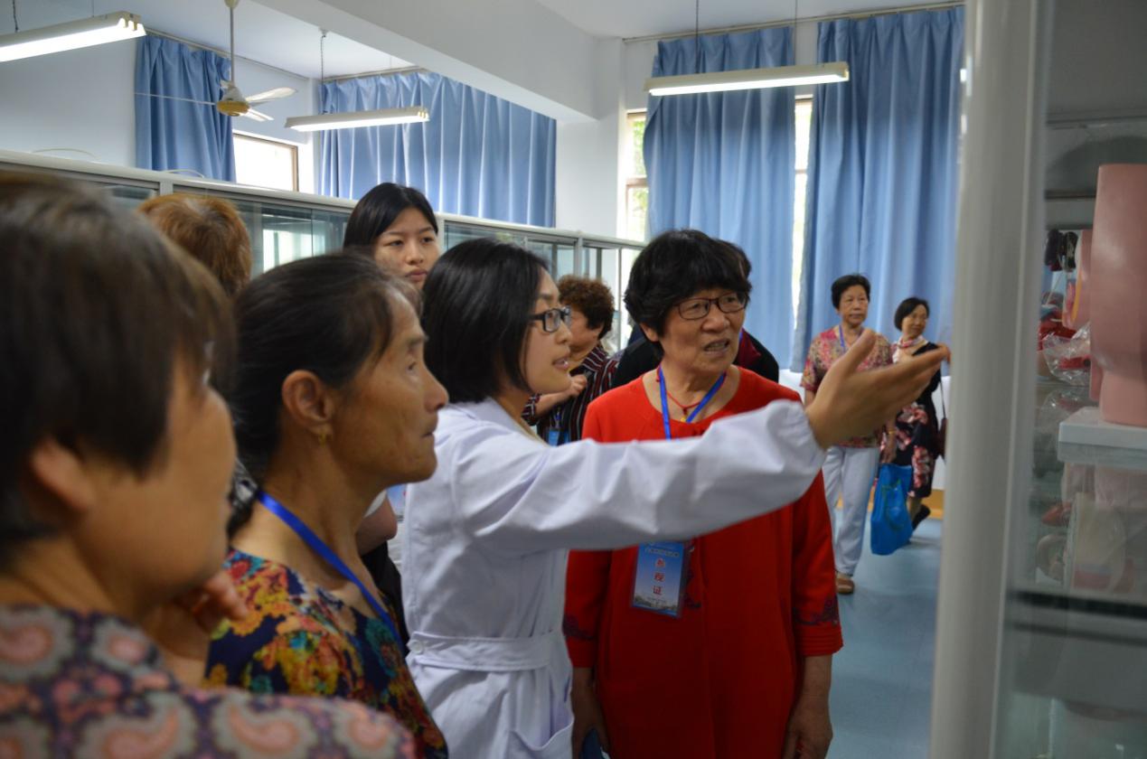 医学院实训大楼作为高校标准化实训大楼,借此机会向居民开放,发挥社会服务功能,社区居民们参观了医学院人体模型和标本馆,由医学院专任教师负责现场讲解。
