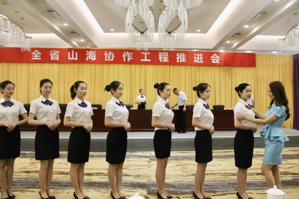 5月30日,全省山海协作工程推进会在我市举行。为做好会议期间省委、省政府,各地市委、市政府领导、山海协作代表近300余人的接待工作,会前三天,我校继续教育学院针对我市93家单位(部门)主要负责人进行了“一对一”的商务礼仪的培训,从短信问候,见面着装、仪态、握手、自我介绍、倾听、引导、表情与手势、话别礼仪等多方面展现了衢州热情周到、严谨有礼的城市文化新面貌,向来衢参会的省内各部门、行业展示了我市“南孔圣地·衢州有礼”的城市品牌文化。图为我校培训师为市局单位选派的工作人员培训签约仪式礼仪。(宣传部 欧阳洪萍)