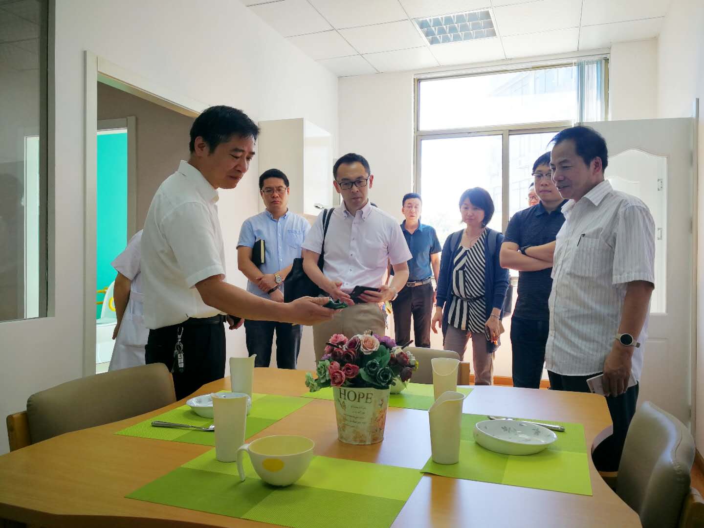 7月13日,科技部科技交流中心中日处秦洪明处长,北京社会管理职业学院老年福祉学院副院长王伟,JICA中国所所长助理内山智寻,中日养老合作项目长期专家臣川元宽等一行来校开展中日养老合作项目调研。