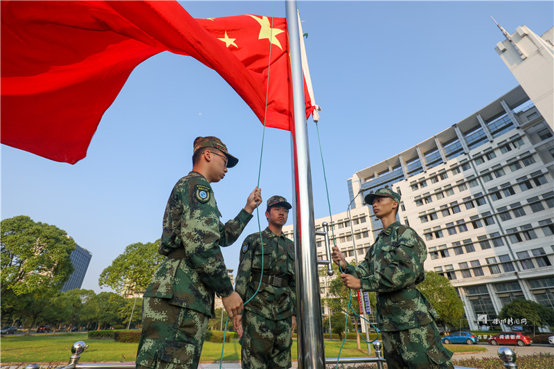 9月30日清晨7时,衢州职业技术学院举行升旗仪式。