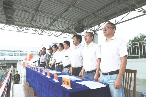 动员大会在雄壮的国歌声中拉开序幕。校长江爱民代表学校向承担军训任务的部队官兵表示感谢。他要求,要把安全问题在第一位,全体军训工作人员都要在思想上高度重视、工作上细致到位,随时与教官、学生保持沟通与联系。