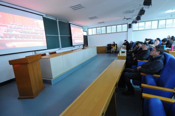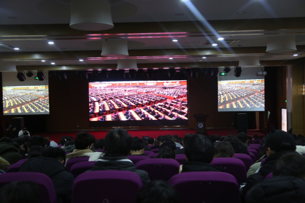 庆祝改革开放40周年大会于12月18日上午10时在北京人民大会堂举行。校领导江爱民、陈青、傅元勋、黄云龙、章加春、何百通、徐浪静、孔庆红及全体中层干部、学生代表通过网络直播分别在两个会场集体收看了庆祝大会。