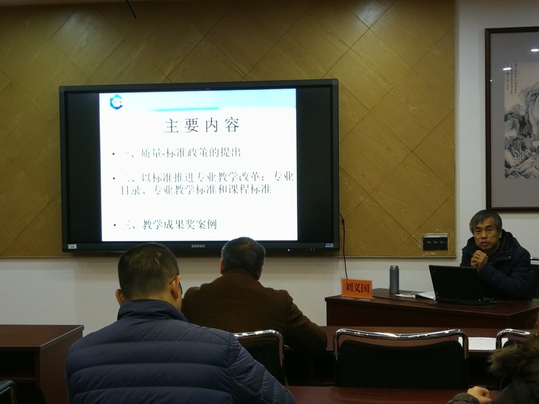 教育部职业技术教育中心研究所教学室刘义国副主任围绕 “基于标准的专业教学改革与教学成果奖”主题, 解读了高职教育质量-标准政策, 刘主任建议以标准推进专业教学改革,并结合部分职业院校的实践创新案例传授了教学成果奖申报的技巧和方法。