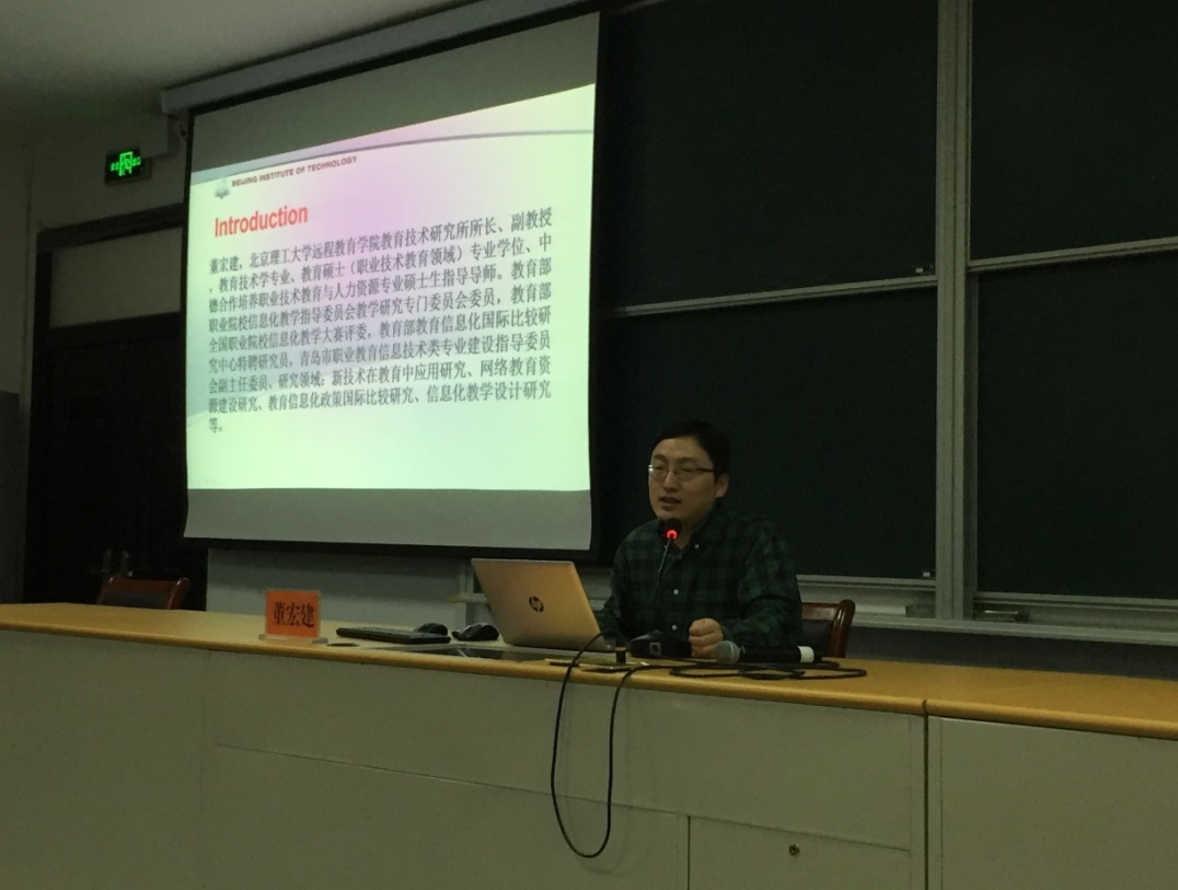 北京理工大学职教所董宏建副所长解读了高职院校教学能力比赛的评选标准,对优秀获奖作品进行了展示和分析,他鼓励教师多参加教学能力比赛,以提高自身的信息素养、技术应用能力、信息化教学水平和教学环境设计能力。