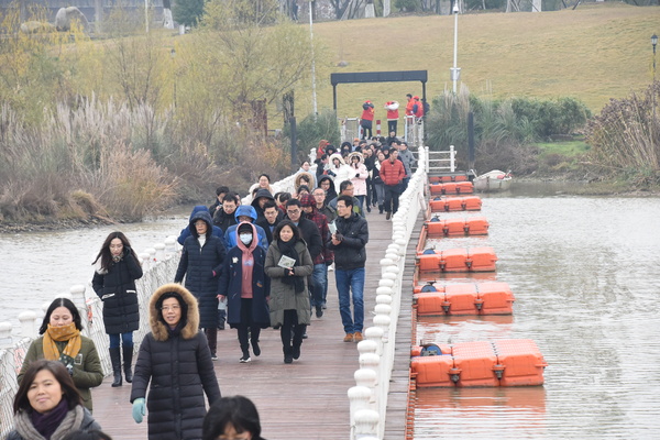 中午12点,教职工陆续到达行政楼电子屏下,随着校党委书记崔戴飞的发令声响起,活动正式开始。冬日的下午,天朗气清,大家结伴而行,在欣赏沿湖美景的同时畅谈未来、交流工作与生活经验,每个人的脸上都洋溢着灿烂的笑容。