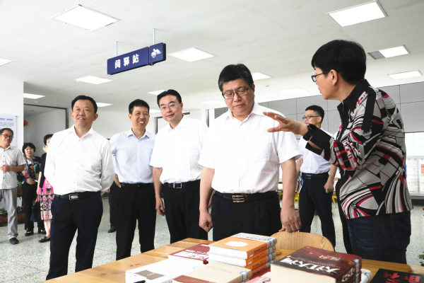 在图书馆,一行人参观考察了职业考证服务中心、职业素养服务中心。成副省长对我校在1+X职教人才培养模式起步早、落地实给予充分肯定,希望再进一步强化研究,真正让学生在1+X职教人才培养模式下得利受益。