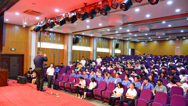 苏勇强以自己的亲身经历及企业的创办过程展开,指出大学生一定要立业,立业才能创造更好的未来,更好的孝敬父母、关爱家人。他引入企业真实案例,深入浅出指出大学生要夯实专业基础、提高个人素养、要坚定理想信念、树立正确的人生观、价值观。台下同学积极互动,就个人发展、职业规划、公司前景等方面的提出问题,苏勇强做了详细解答。