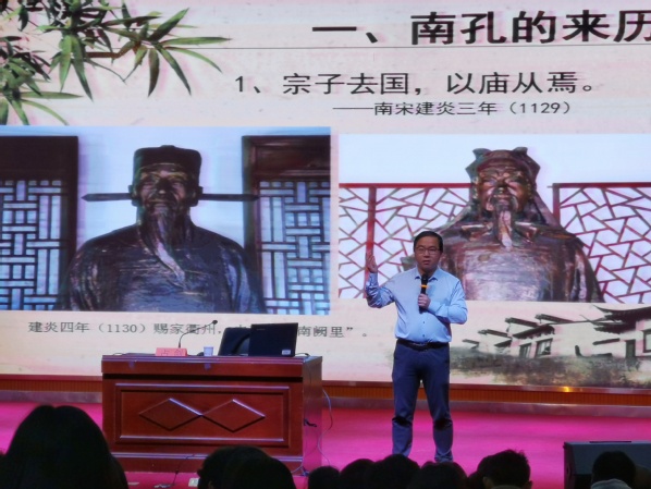 占剑馆长在讲座中分别从南孔的来历、全国唯二的孔氏南宗家庙、南孔文化的现代意义三个角度深入阐述了孔氏南宗家庙的过去、现在及其历史研究价值。占馆长从“宗子去国,以庙从焉”、“宗子让爵,违荣不违道”和“明代复爵传承”三个历史层面系统梳理了孔氏南宗的家庙变迁史,并揭示从庙堂走向民间的南孔文化的现代意义。