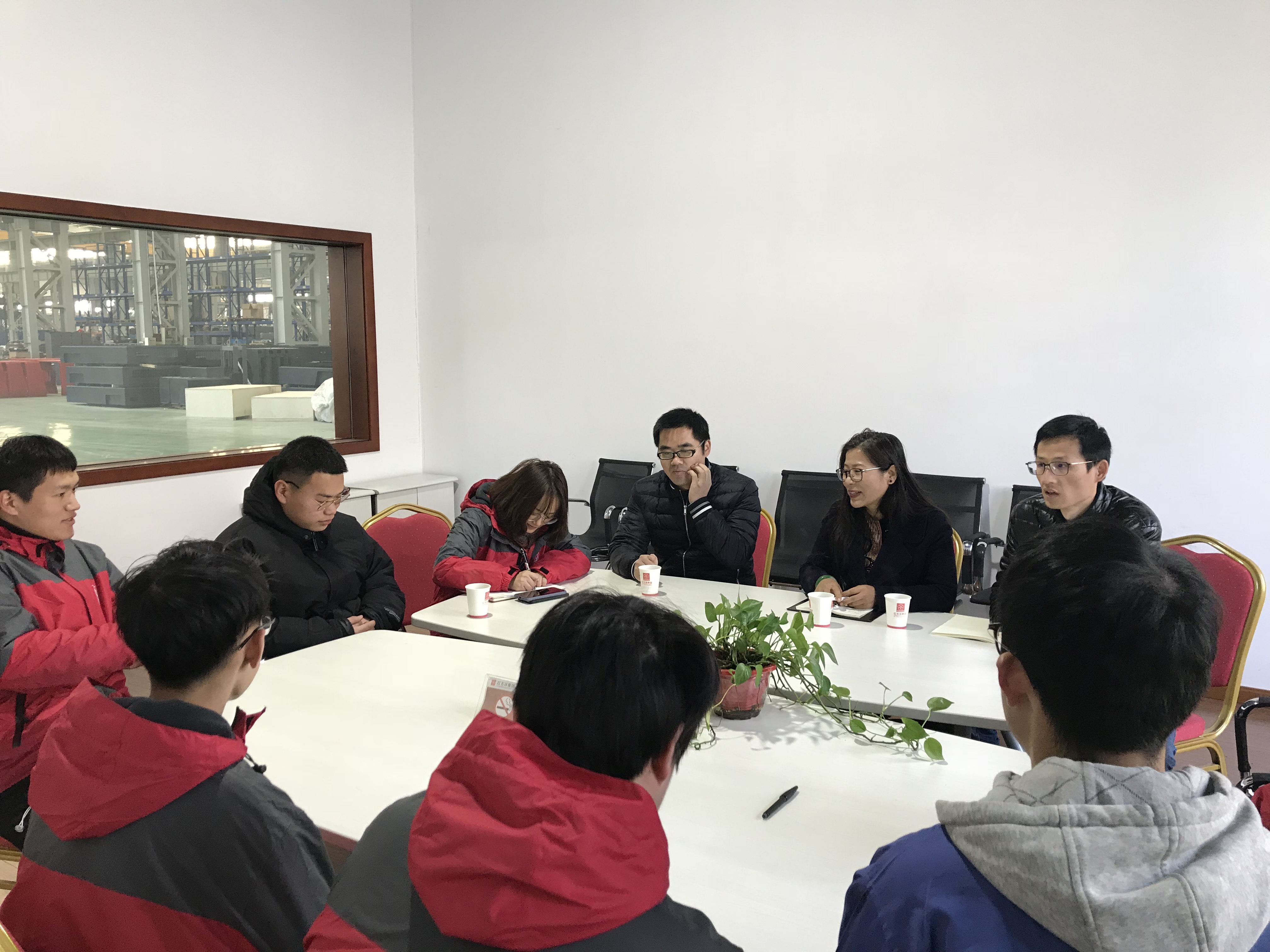 首先,一行人来到红五环集团,在装配车间会议室,7名同学参加了座谈会。张玉贤首先问候大家,她强调“要及时转换角色,从‘学生’转变成‘员工’,遵守企业规章制度,做有责任有担当的新时代员工”。参加座谈的同学纷纷表示“在企业的实际锻炼,很好地将理论应用于实践,企业的师父耐心细致地指导,我们也脚踏实地地肯学,企业精英化培养使得我们快速的成长与提高,企业为我们提供的成长通道十分畅通”。参与座谈的集团人事许经理表示我校学生都很吃苦耐劳,专业知识扎实,与人交往能力突出,感谢我院为集团输入优秀的人才。
