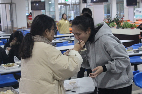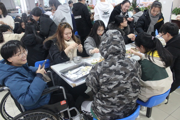 冬至是我国传统节日,是农历中非常重要的一个节气,更是为了纪念“医圣”张仲景“祛寒娇耳汤”之恩。2019年接近尾声,在冬至夜到来之际,学生处勤贷助学中心以及大学生自我发展中心的老师和同学们与各个二级学院的老师、学生干部一起走进我校食堂,与部分家庭经济困难学生一起包饺子、过节日。虽然室外寒气袭人,阴雨连绵,但食堂里面却是温暖四溢、其乐融融。