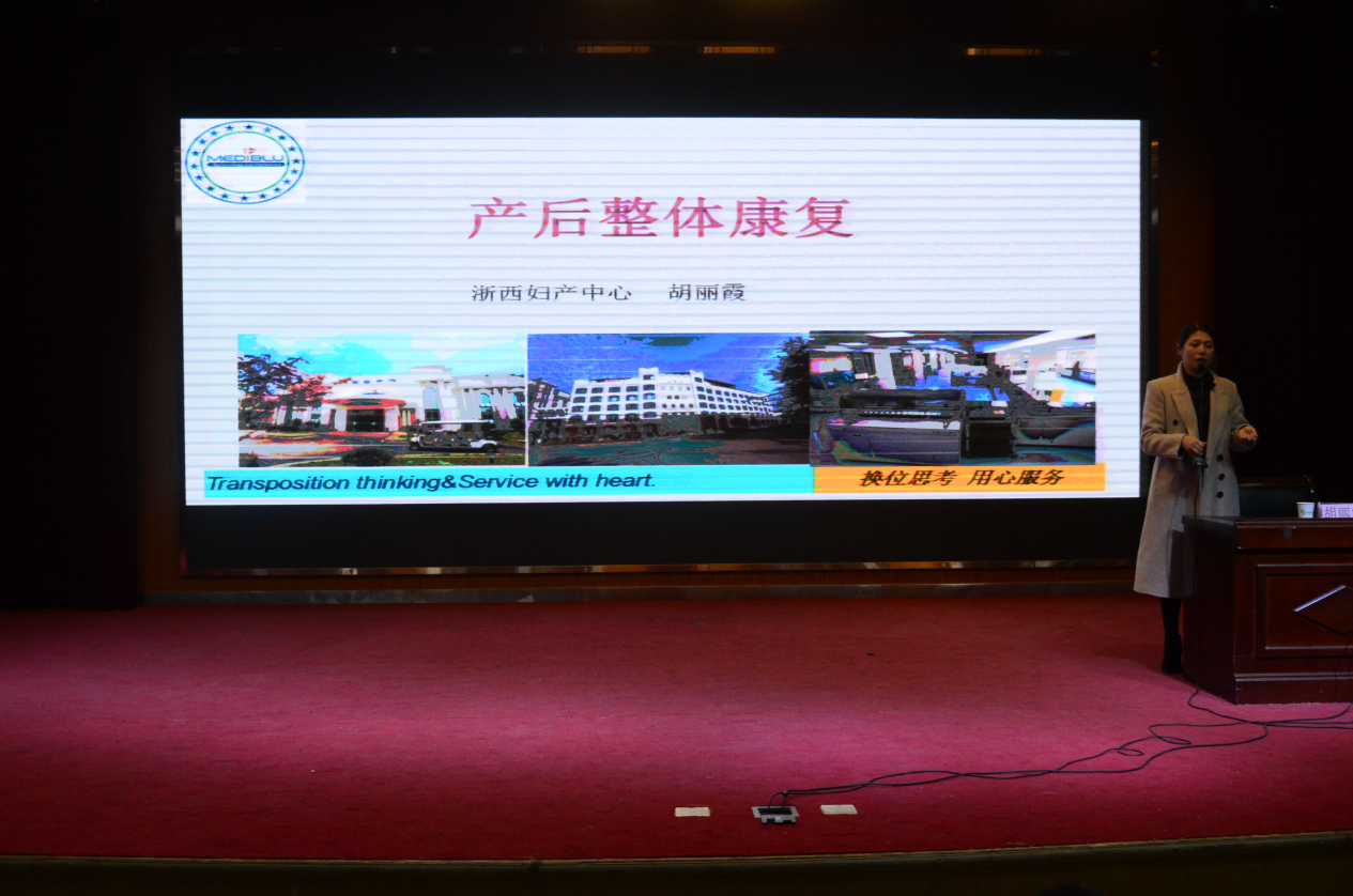 12月23日晚上6点半,图书馆1号报告厅,浙西妇产中心副主任护师胡丽霞受邀为医学院18、19级助产专业和护理专业母婴护理方向的学生作“产后整体康复”主题讲座。