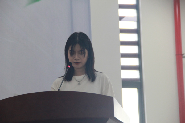 尔后,毕业生代表徐慧玲发言,她回忆了自己三年来的成长历程,表达了对校园生活的眷恋,感谢了师长们的谆谆教诲,祝福着即将远行的同窗。希望他们能谨遵师长教诲,传承母校精神,勇担社会期望,争做优秀工匠。