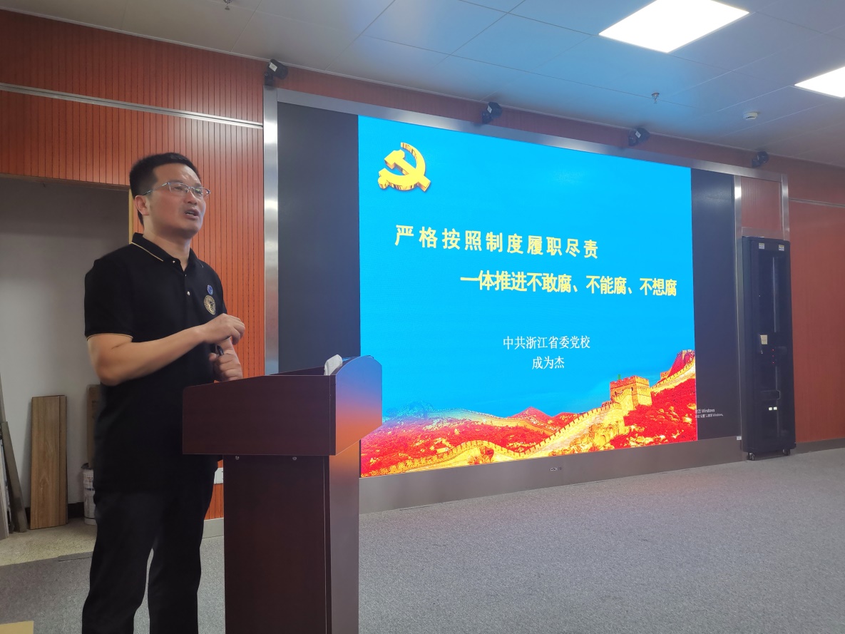 全体教职工集中观看了由中共浙江省委党校成为杰主讲的廉政专题讲座,并认真的做了学习笔记。