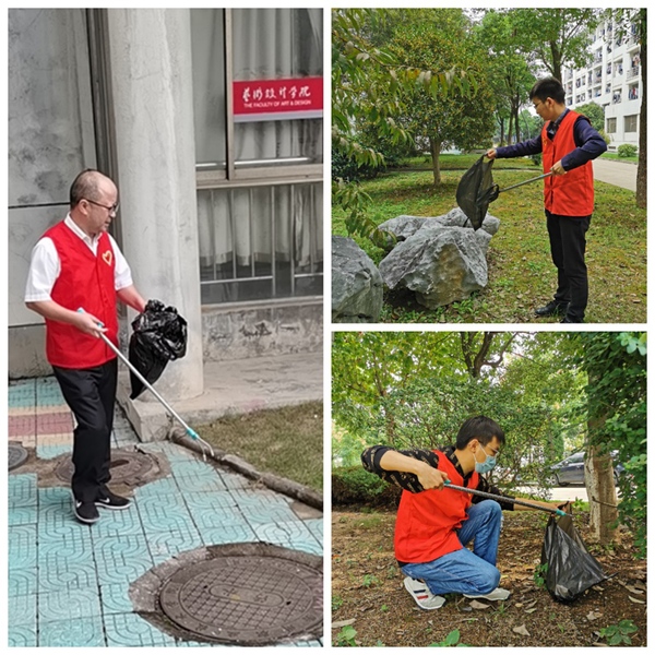 为落实学校关于做好有礼校园建设,打造文明洁美环境,强化师生文明素养和精神风貌,抓紧深入推进全校师生志愿服务活动,学院第二党支部于九月中下旬开展党员志愿服务主题党日活动。广大教师身穿穿上红色志愿马甲,拿起垃圾钳、垃圾收纳袋,穿行在校园楼宇之间,一边躬身捡拾路面、角落的烟头、垃圾,不放过任何一处死角,一边向过往的师生进行文明有礼校园创建的讲解与宣导。