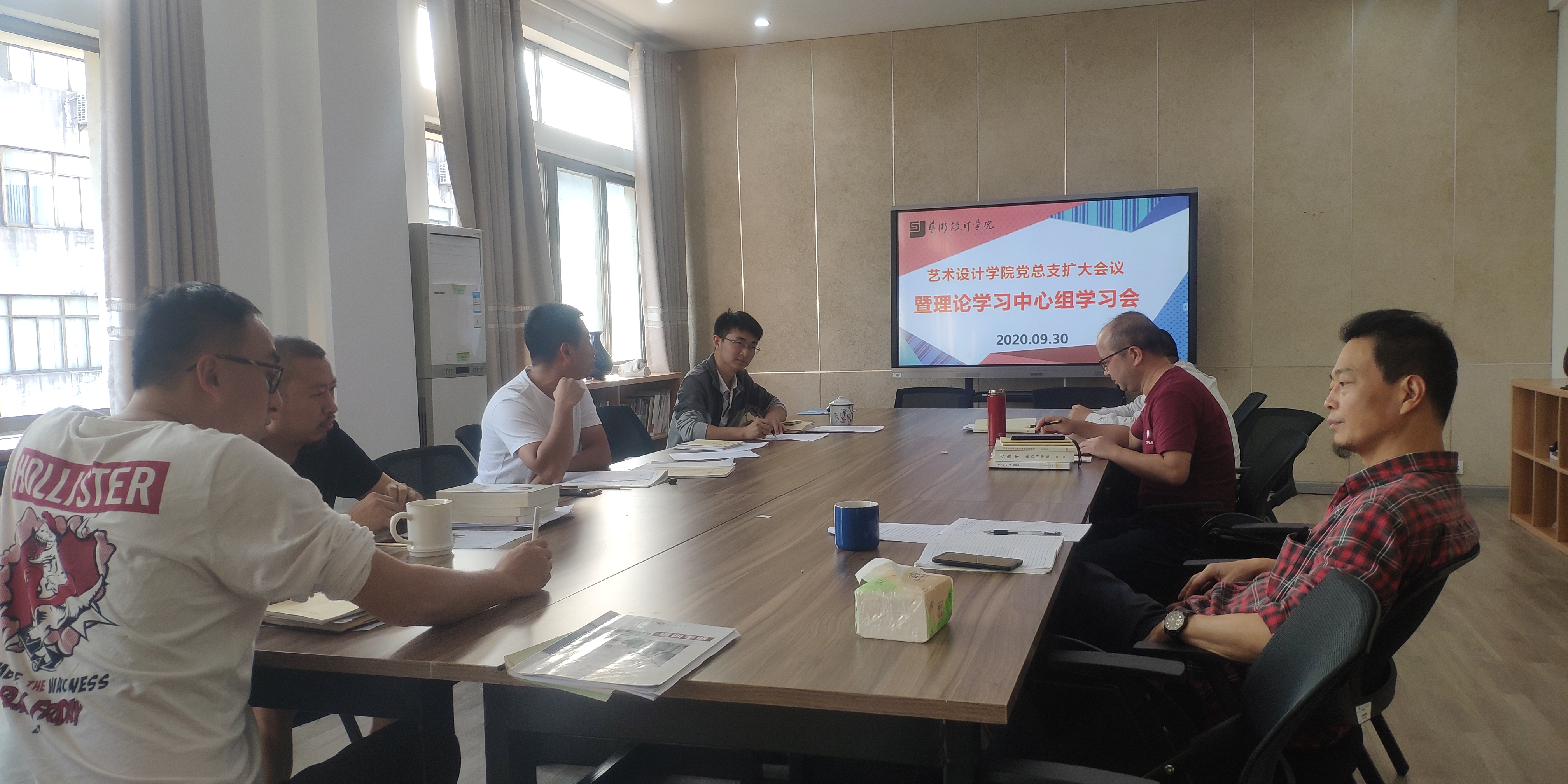 9月30日下午,艺术设计学院党总支在艺术楼会议室召开党总支扩大会议暨理论学习中心组学习会。艺术设计学院党总支书记徐有强主持会议、院长叶云龙,副院长许金友、潘宇,党总支副书记朱可成及各支部书记参加了此次会议。