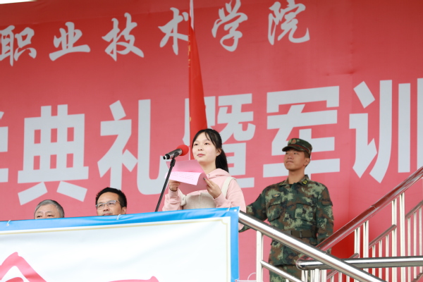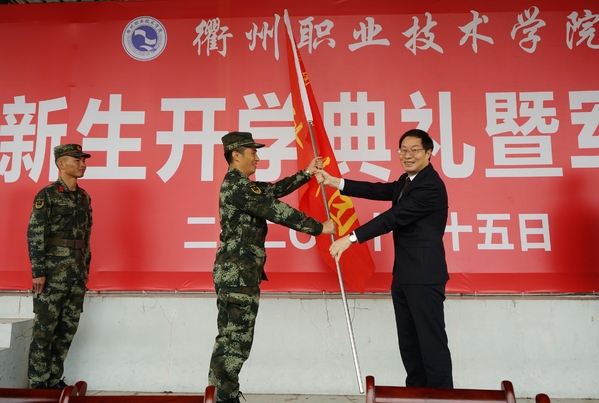 党委书记徐须实向军训团授旗,并宣布2020级新生军训正式开始。