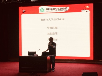 衢州市人社局创业指导科雷老师向在场学生详细讲解了“自主创业扶持政策”及“高校毕业生到中小微企业就业补贴”的政策内容。