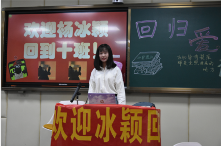 随着开学脚步声的临近,我们整理完行李踏上来衢职的路上。而此时,有一位特殊的同学未能及时与我们相见。我相信在过去的22天里,每一位同学都期待着她的到来,她就是20护理10班的杨冰颖同学。11月1日,我们终于盼来了冰颖回归十班大家庭的这一天。为此,全班组织了“欢迎回归十班,我们携手一起同行”的主题班会。