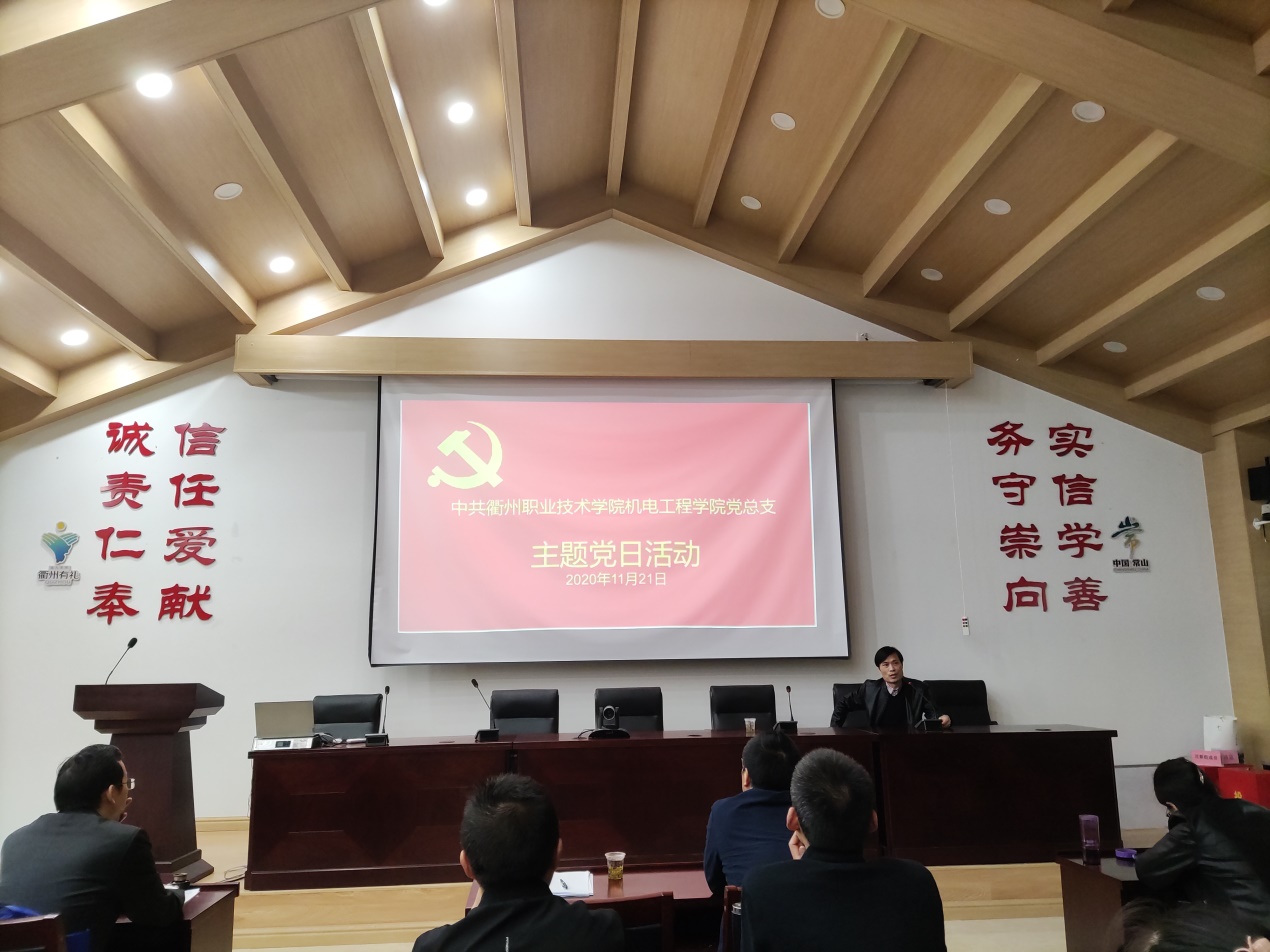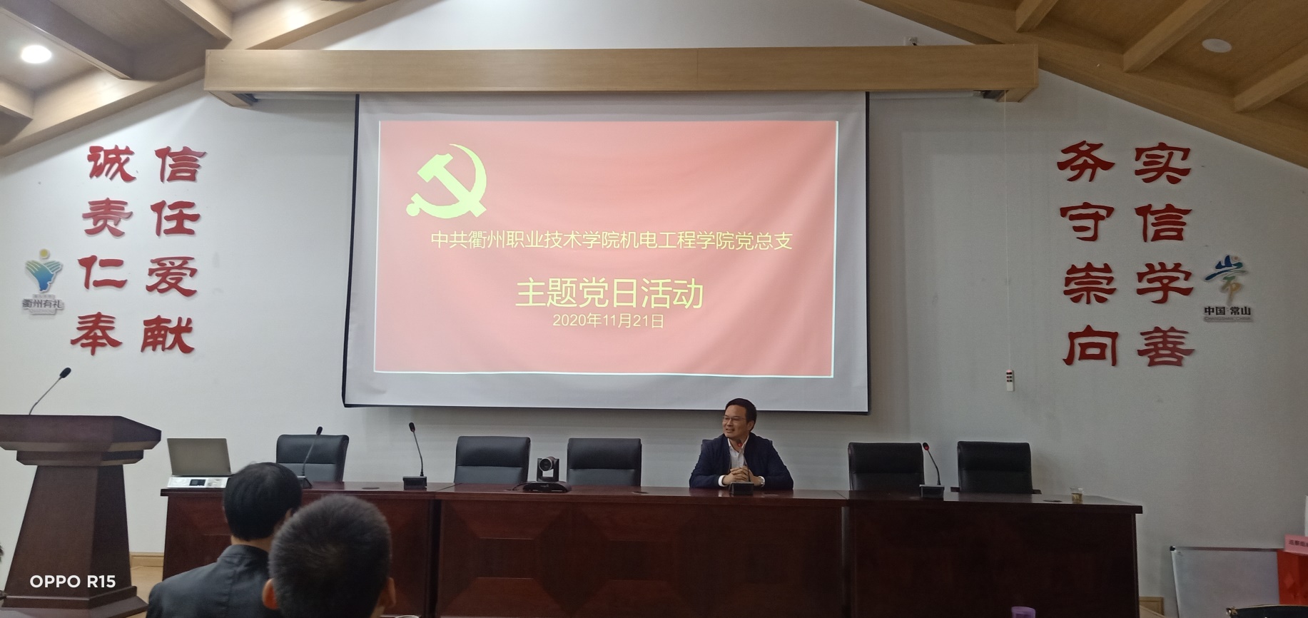 二是开展分享学习会。会议由由机电工程学院院长周明安主持。首先邀请红军后代给大家上党课;其次各支部代表发言,深刻领会党的十九届五中全会精神内涵,结合“双高”建设要求,以及专业发展极建言献策。