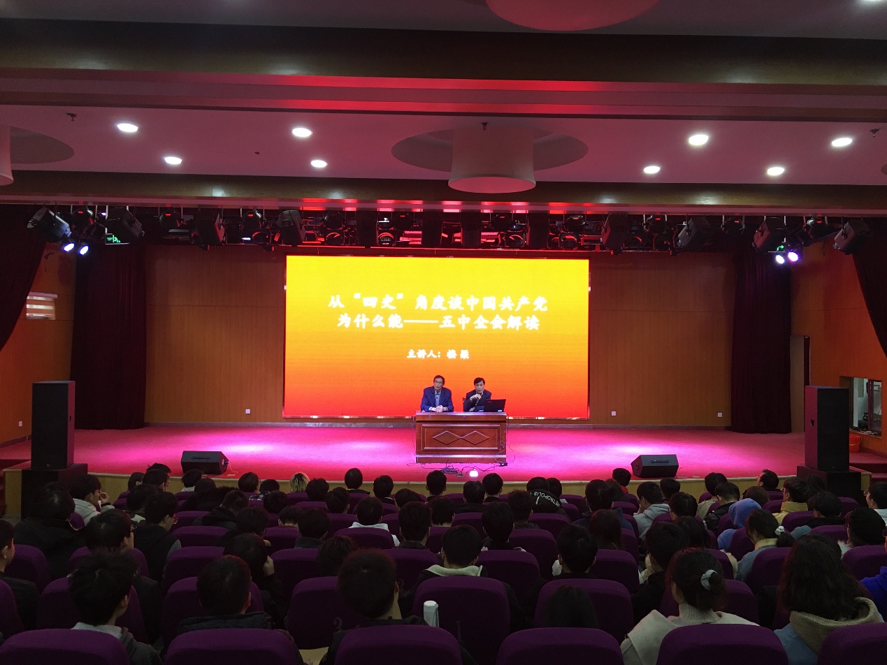 11月30日下午15:30,机电工程学院组织全体入党积极分子在图书馆1号报告厅参加“学‘四史’,守初心”主题教育活动。原衢州学院图书馆馆长、柯城区特聘专家、全国教育改革优秀教师楼梁,为同学们带来一场题为《从“四史”角度谈中国共产党为什么‘能’——五中全会解读》的精彩党课。培训由机电工程学院院长周明安主持。