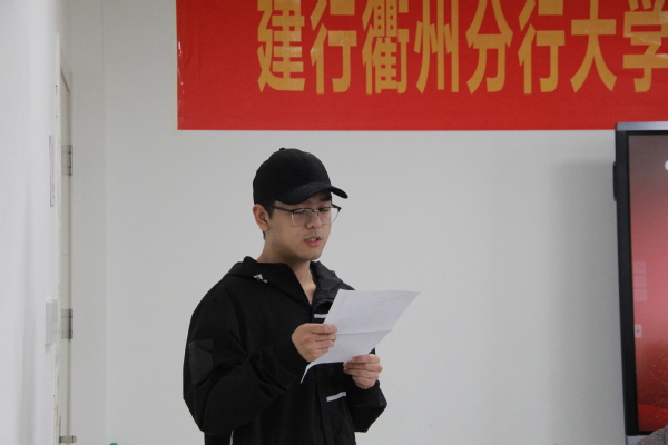 朱芝洲讲话。他对建行衢州分行的支持表示感谢,希望各位同学在今后的大学生活中,珍惜荣誉,再接再厉,重知识爱实践,肯吃苦能坚持,会感恩懂回馈,努力做到品学兼优,争取做好各方表率,勇担社会责任,不负时代期望。