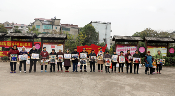 “村广场上相片摆起来了,我看到有你的哩!”双溪村68岁的村民张大娘吆喝着。村文化广场上一幅幅村民自己的肖像作品正在展出,围拢过来的村民们看着照片喜上眉梢,不时还和身旁的老人交流,看看照片里谁笑的最好。12月8日,衢州职业技术学院艺术设计学院“艺行者”教师志愿服务队再次来到江山市四都镇双溪村,将前次已经拍摄好、完成打印、装裱的相片,用相框、支架放置在村文化广场上,一场简易却不简单的乡村摄影展悄然登场。