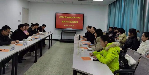 12月18日中午,金华职业技术学院就业指导处(创业学院)副处长(副院长)王飞一行就大学生职业生涯规划与就业指导工作体系、促进本地就业率等方面来我校交流座谈。合作发展处负责人、各二级学院学工办主任参与交流座谈。