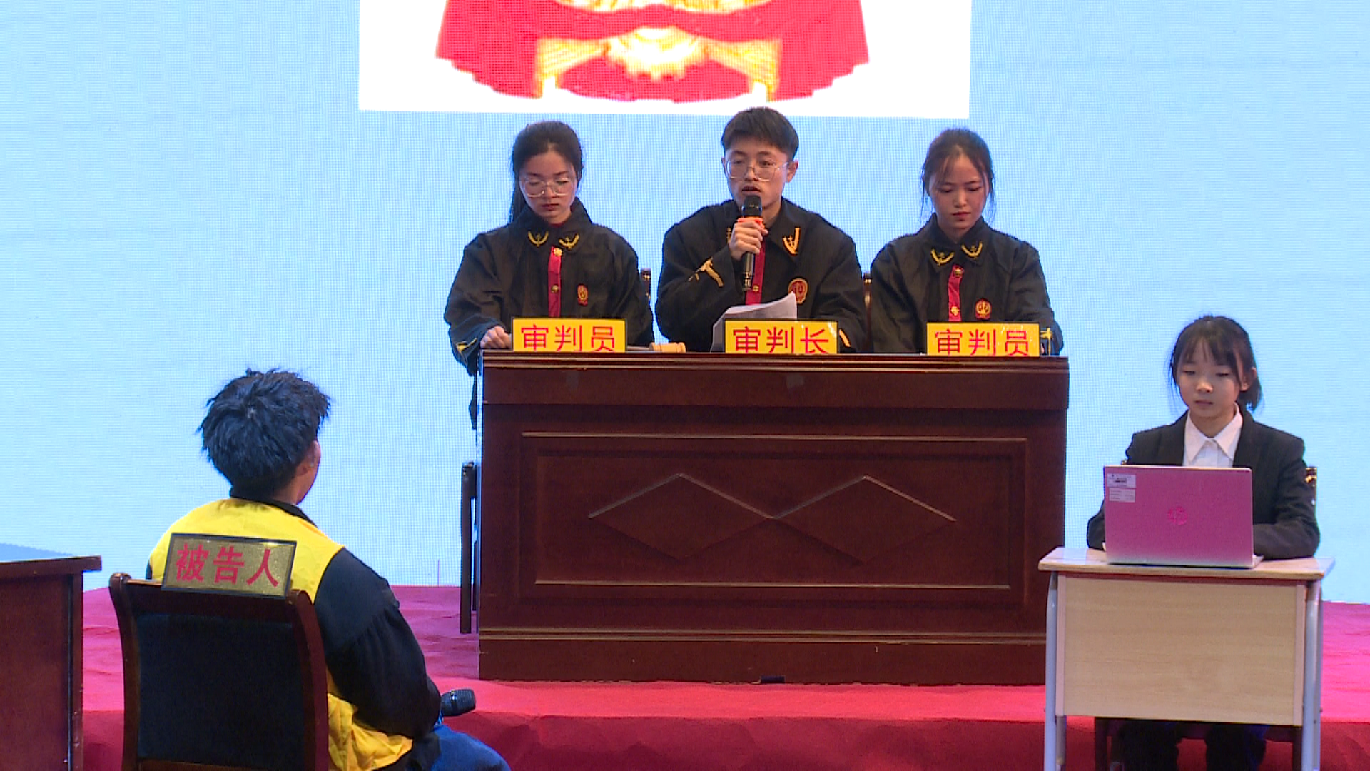 2021年1月10日晚,由校普法工作办公室与马克思主义学院联合举办的《思想道德修养与法律基础课》实践教学汇报会暨校普法教育大型活动“模拟法庭”庭审活动在图书馆一号报告厅举行。参与观摩本次活动的有校普法工作办公室负责人、马克思主义学院全体教师、大一学生代表和校普法工作队学生共300多人。