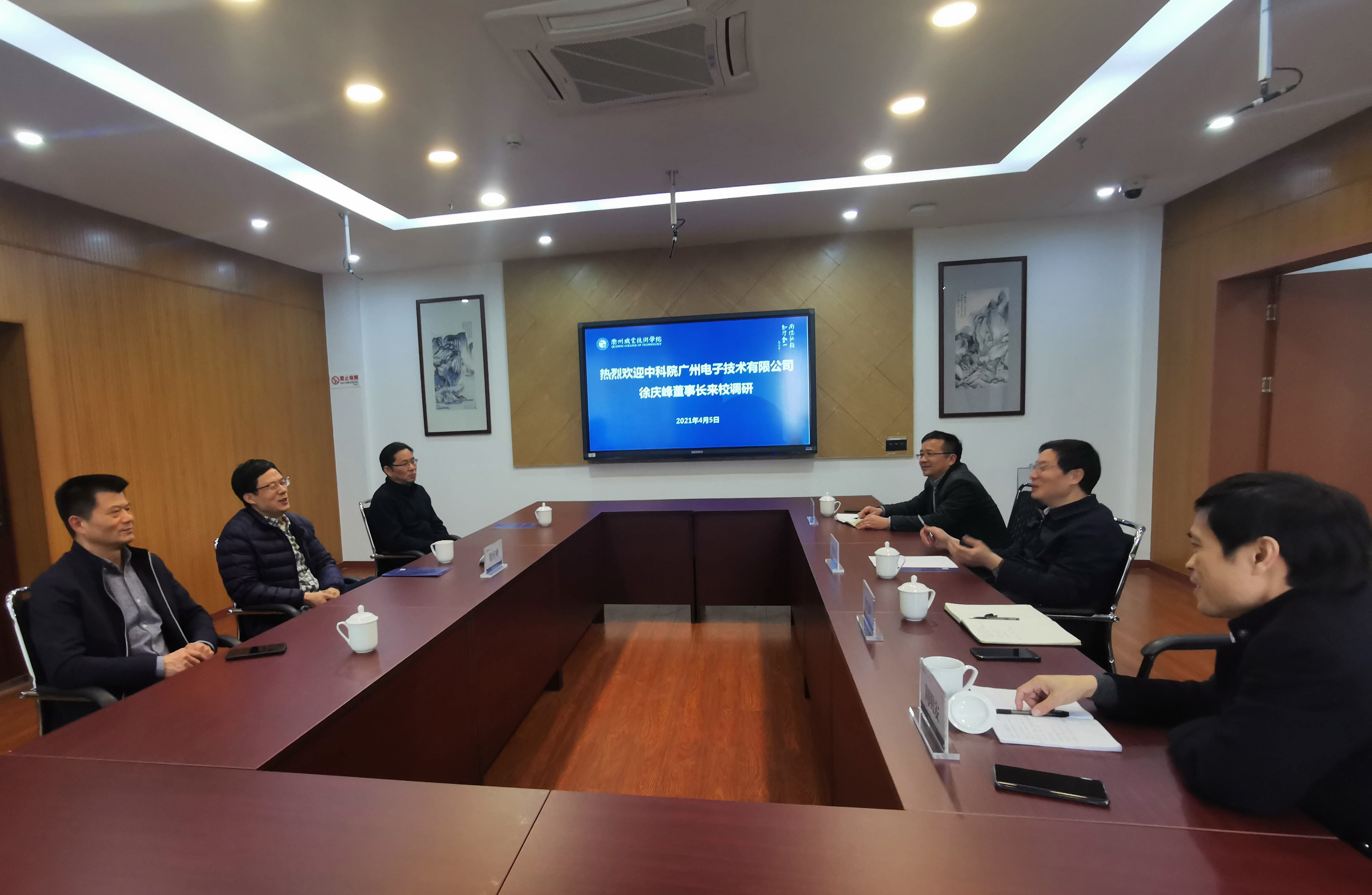4月5日上午,中科院广州电子技术有限公司徐庆峰董事长来校调研。校党委书记徐须实,知名职教专家翁孝川,校办公室、信息工程学院、机电工程学院等部门负责人陪同调研。