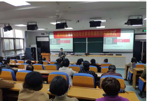 4月6日起,为期一周的开班仪式在我校智慧新城老年大学一一开班,本次春季班开设中医养生、合唱、健身气功(八段锦)、智能手机应用、手机摄影、绘画、书法、广场舞等8个专业9个班次。衢州市智慧新城老年大学为满足广大退休干部职工、老年人的求知、求健的热切希望,在广泛调研的基础上,开设深受老年人喜爱的课程,吸引离退休老同志、老年人来校学习,既丰富了老年人的业余爱好,又能使老年人人老思想不老、精神不老、知识不老,还能更好地面向社会发挥作用,实现新的人生价值。