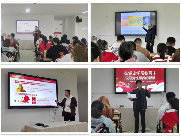 随后,我校8090新时代理论宣讲团成员、艺术设计学院党员教师龚一舟以《坚定理想信念 坚守入党初心》专题宣讲为学员们带来“开班第一课”;艺术设计学院党总支委员、副院长许金友围绕如何加强党性修养为学员们做了专题辅导报告;艺术设计学院第一支部书记霍庆福、第二支部书记何敬分别以《1921-2021中国共产党的发展历程》、《在党史学习教育中汲取党性修养的智慧》专题辅导带领全体学员回望过往奋斗路,强化党史思维,增强历史定力。