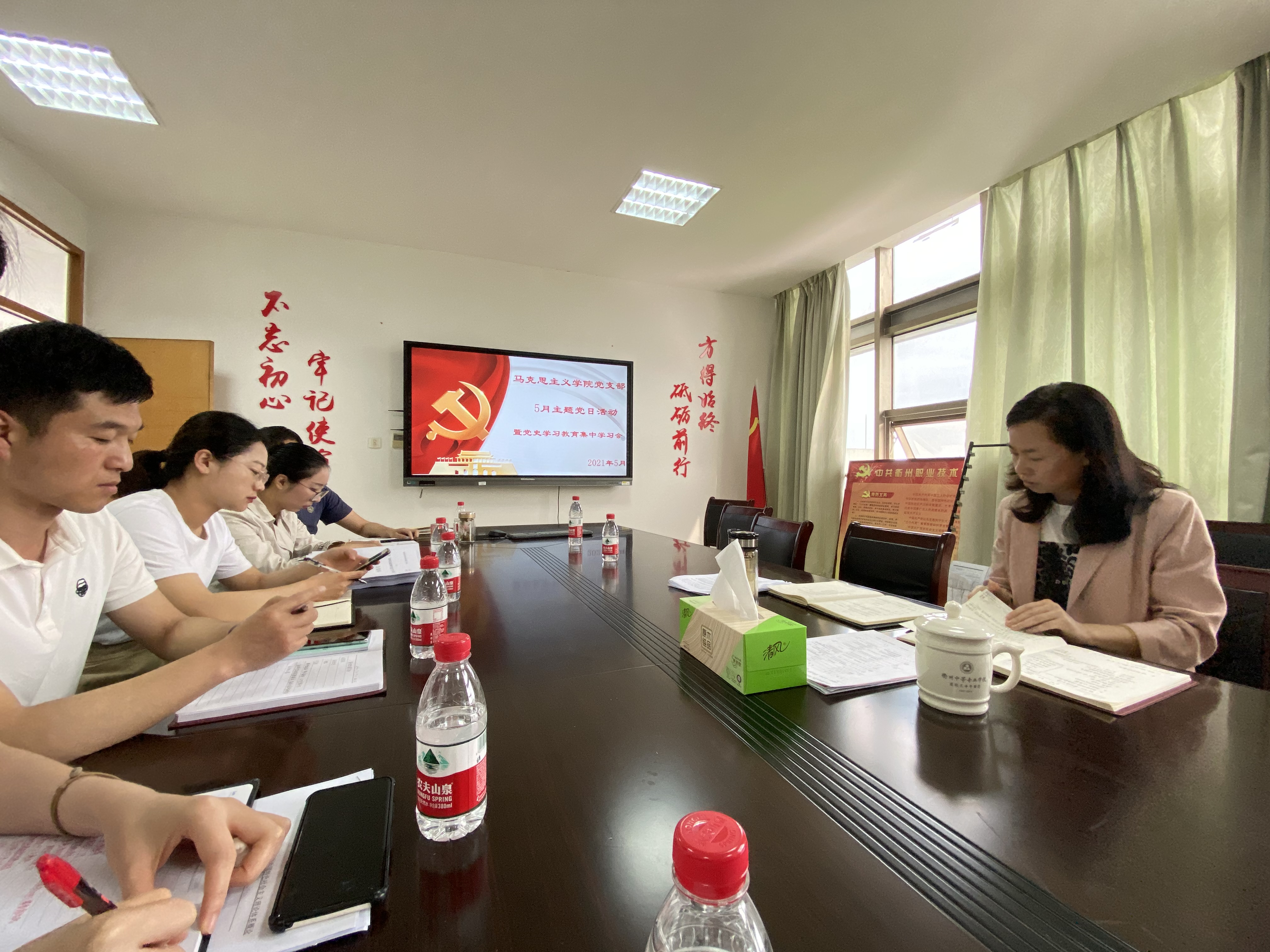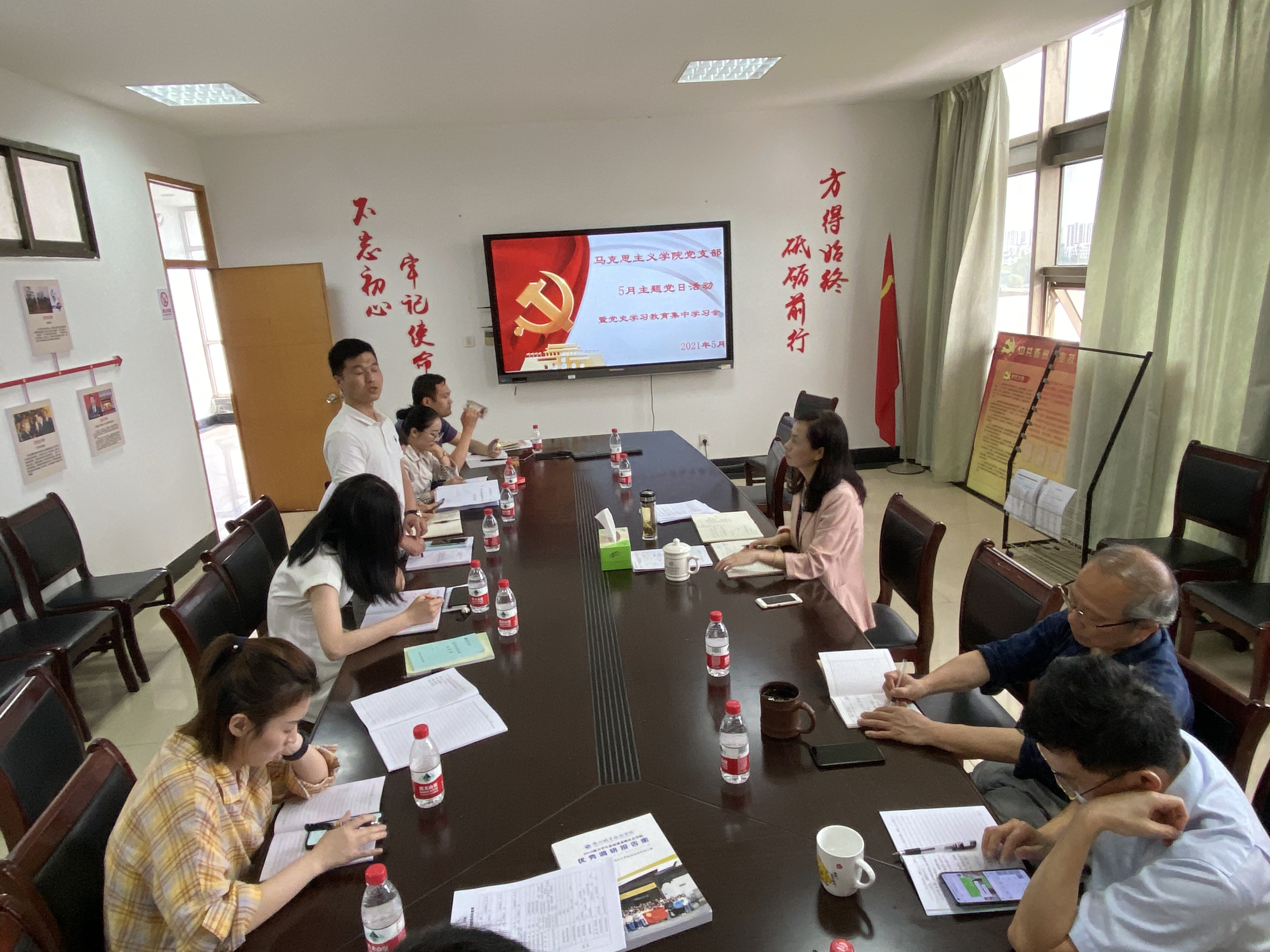 5月12日下午,马克思主义学院党支部在行政楼801会议室召开“党史学习教育”专题学习会,组织全体党员教师认真学党史、强信念、跟党走,受支部书记邵方益委托由支部委员陈旭雯同志主持会议。
