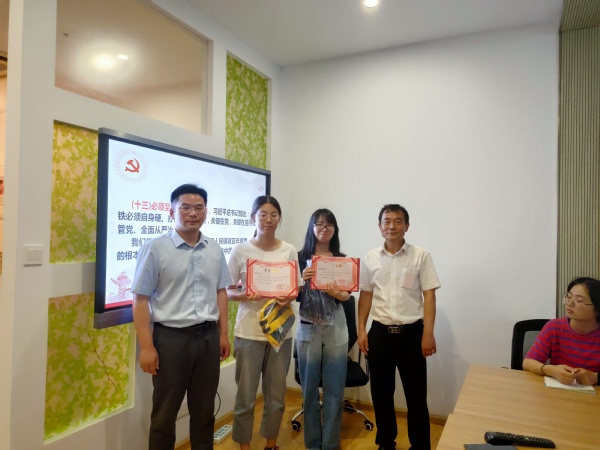最后,图书馆馆长夏武祥与王洪明为参加“博学杯”敬党爱国和“读党建刊,问答有礼”活动的获奖同学颁奖。