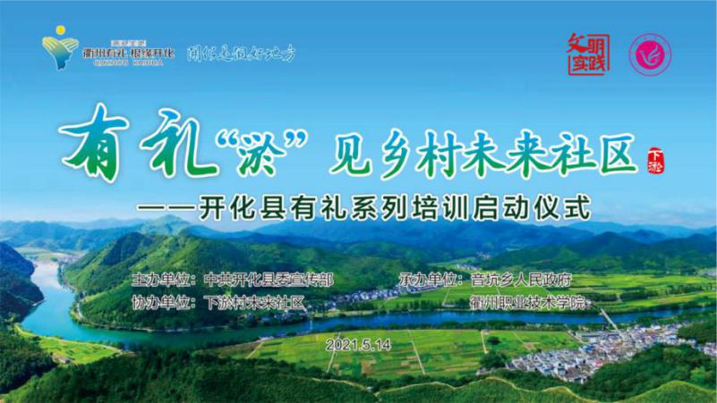 5月14日,由中共开化县委宣传部主办,我校和音坑乡人民政府承办,下淤村未来社区协办的有礼“淤”见乡村未来社区————开化县有礼系列培训启动仪式在开化县音坑乡下淤村乡村未来社区举行。