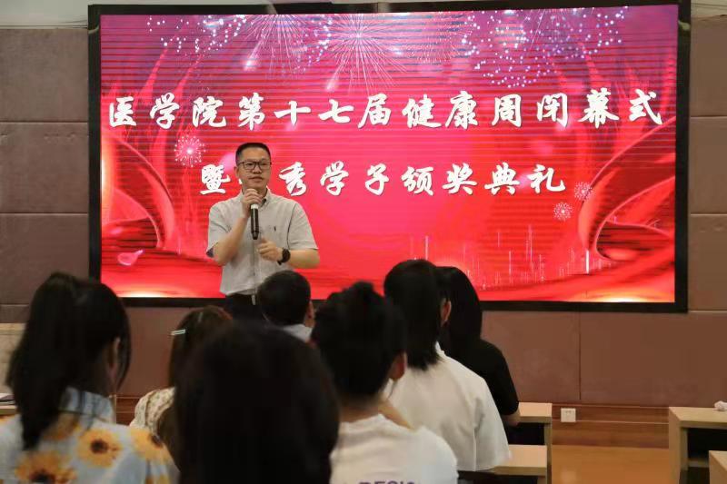 为纪念第110个“5.12”国际护士节,弘扬南丁格尔精神,提高医学院全体同学整体素质,展现护生的风采。6月10日,医学院在实训楼多功能厅举办第十七届“健康之路,医心相伴”健康周闭幕式暨优秀学子颁奖典礼。医学院领导班子、全体辅导员以及获奖学生代表参加。