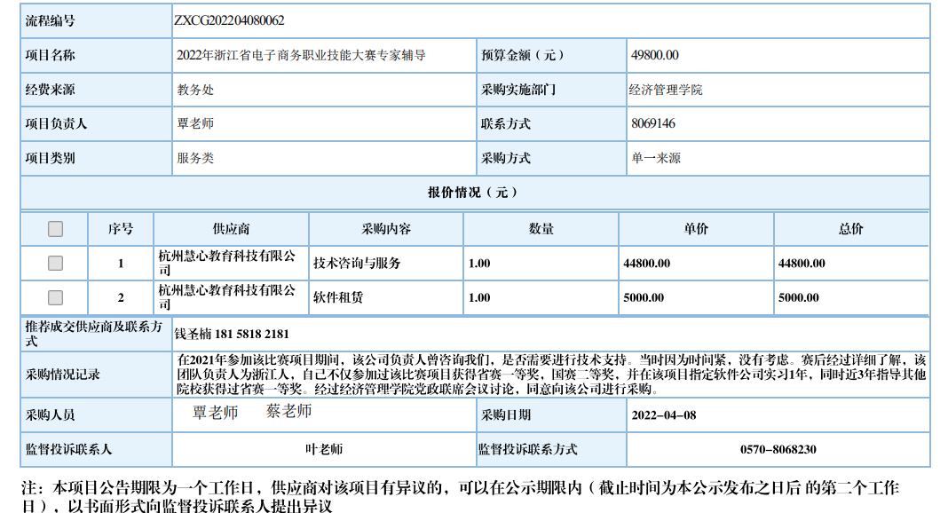 衢州职业技术学院2022年浙江省电子商务职业技能大赛专家辅导自行采购公示