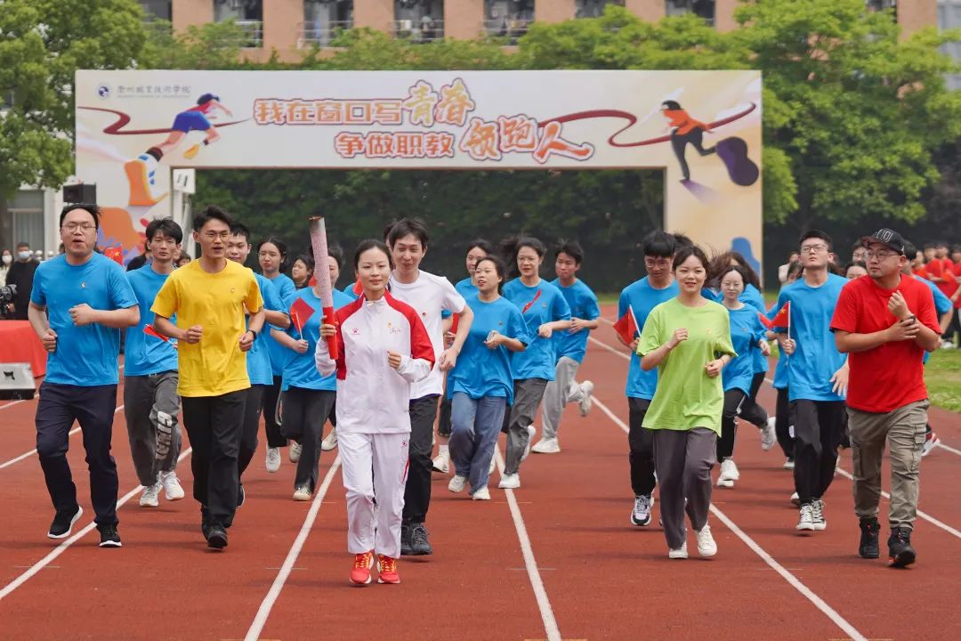 徐须实代表学校党委,向广大团员青年致以节日的祝贺和诚挚的问候。徐书记指出,为庆祝建团100周年,深入贯彻习近平总书记在考察中国人民大学时的重要讲话精神,校团委、公共体育部联合举行“我在窗口写青春 争做职教领跑人”主题团日活动,以优秀青年代表为榜样,激励广大团员青年踔厉奋发、勇毅前进,跑出青春加速度,争做职教新青年,这样的活动很有意义。借此机会,向全校团员青年提出三点希望:一是希望大家永葆理想信念,跑过迷茫的“弯道期”;二是希望大家踔厉奋发前行,跑出奋斗的“加速度”;三是希望大家勇担时代重任,跑向成功的“终点站”。