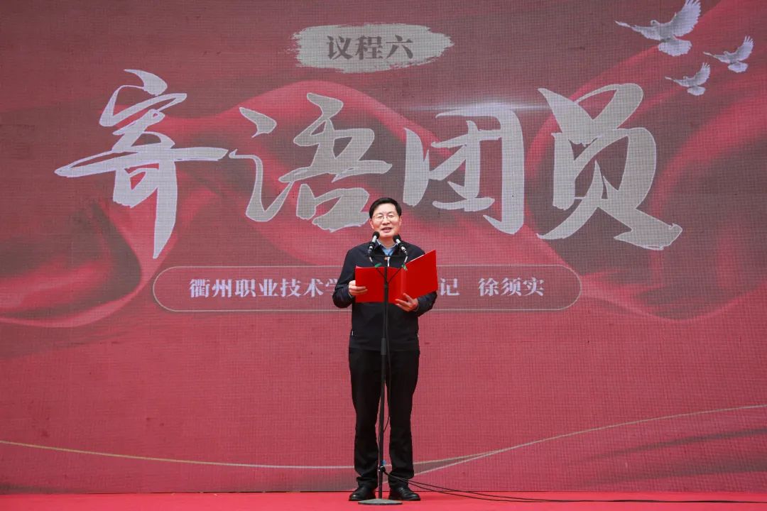 声声誓言,诠释着共青团员的初心和使命,也传递着上级党团组织对团员青年的殷切期望。活动现场,校党委书记徐须实寄语团员青年。
