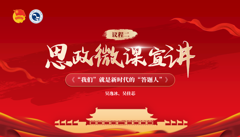 习近平总书记指出:“当代中国青年是与新时代同向同行、共同前进的一代,生逢盛世,肩负重任。”经济管理学院吴逸冰老师和吴佳芯同学为大家带来思政微课宣讲《“我们”就是新时代的“答题人”》,鼓励当代青年爱国、励志、求真、力行,做新时代的“答题人”。