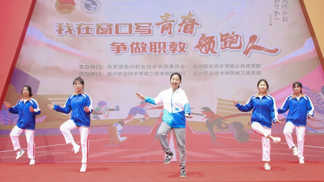 公共体育部青年教师彭晓倩携手校健美操队成员,带领大家跳起青春洋溢的健身操《本草纲目》。