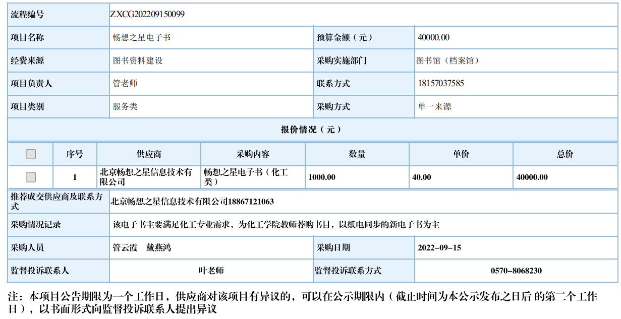 衢州职业技术学院畅想之星电子书自行采购信息公示