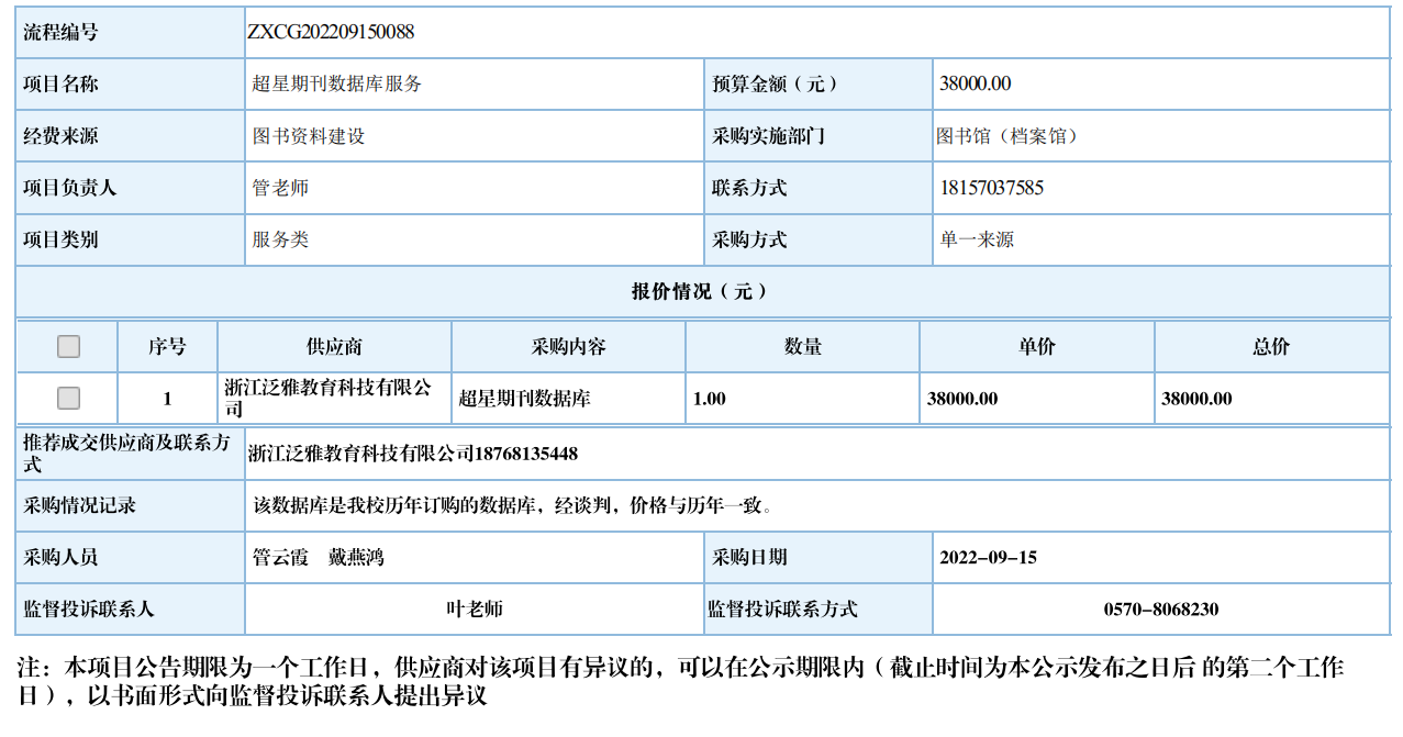 衢州职业技术学院超星期刊数据库服务自行采购信息公示